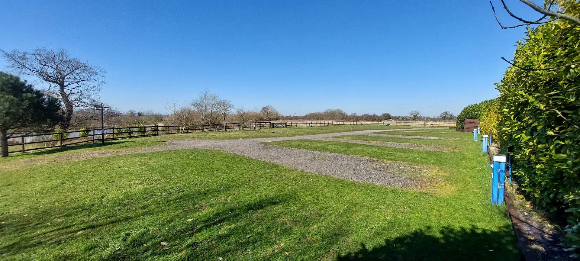 Fully serviced bays – each hardstanding pitch has 15‑amp hook‑ups, photocell lighting, drinking‑water points and easy access to chemical and grey‑water disposal points.