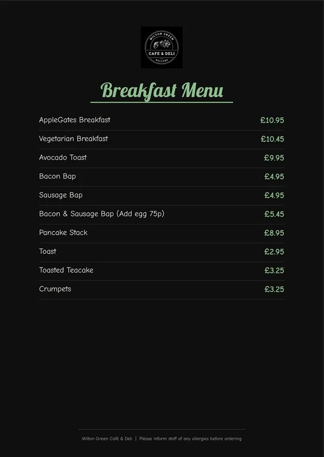Milton Green Café & Deli is part of the Applegates community on the A41, near Chester. Visitors describe us as a “gorgeous little café with the warmest of welcomes”.